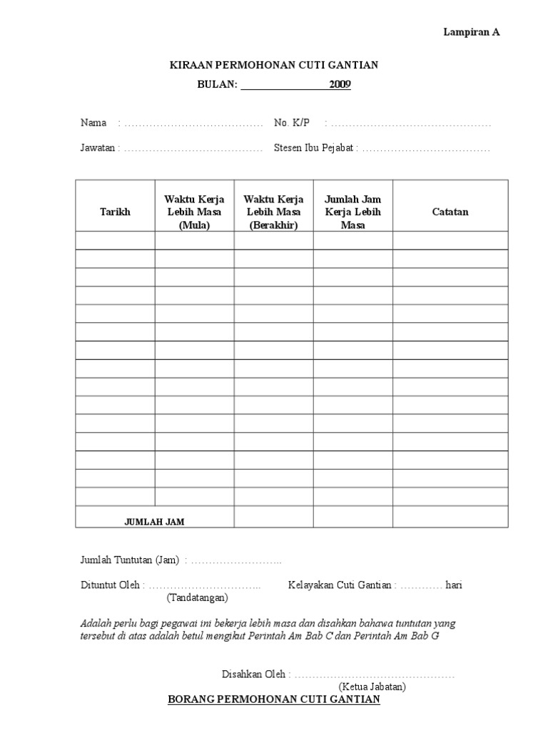 Moshims Contoh Borang Cuti Gantian Kerja Lebih Masa Otosection