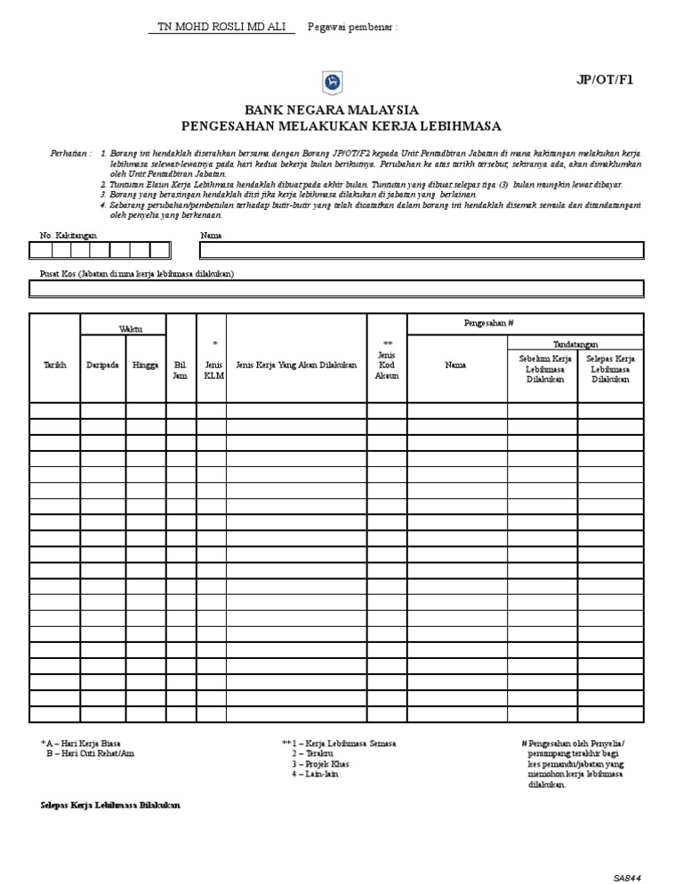 Borang tuntutan kerja lebih masa hendaklah disertakan dengan salinan permohonan ini ke Bahagian Pentadbiran Dan Sumber Manusia iCEPS. Cg Manniseh menerbitkan KERJA KURSUS PENGAJIAN AM pada 2021-07-15. 43143 Contoh Borang Sasaran Kerja Tahunan yang telah.