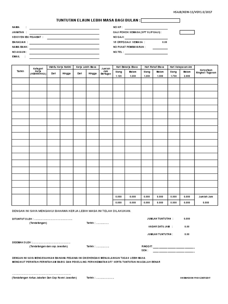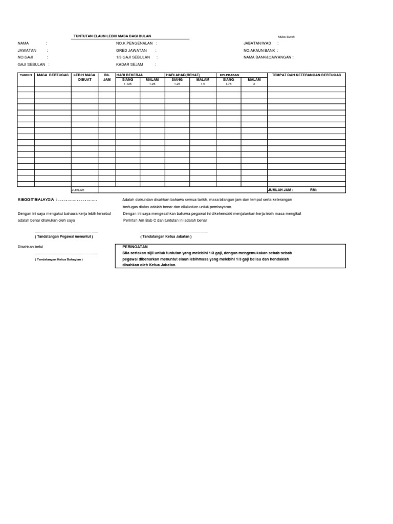 Borang Tuntutan Elaun Lebih Masa Pdf